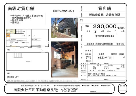 〒630-8356 奈良県奈良市南新町29 平和奈良ビル1F 駐車場2台有り