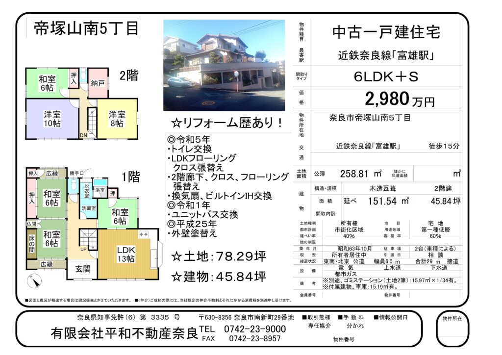 帝塚山南5丁目2980万案内書